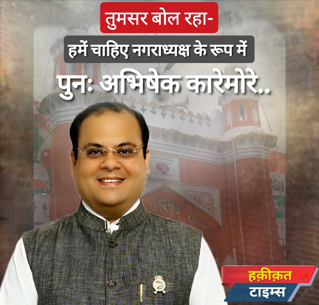सोशल मीडिया के प्लेटफॉर्म फेसबुक, वाट्सएप, इंस्टाग्राम पर “फिर एकबार अभिषेक कारेमोरे नगराध्यक्ष” की मांग चल रही है। लोग उनके पुराने दिनों के कार्यकाल को याद कर रहे है। हाल ही में तुमसर नगराध्यक्ष का आरक्षण ओबीसी जनरल हुआ है। जिससे तुमसर वासी की नजरों के सामने अभिषेक कारेमोरे नगराध्यक्ष के रूप में सामने आ रहे है। 3 साल के प्रशासक राज में शहर का सत्यानाश हो गया है। तुमसर वासियों की आस है कि शहर के विकास को पुनः पटरी पर लाने कारेमोरे ही बेहतर विकल्प है।