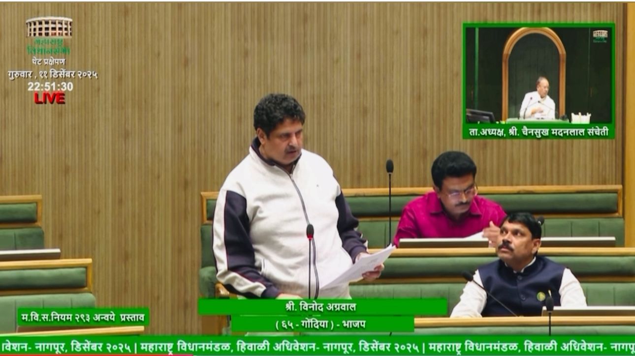 महाराष्ट्र विधानसभा के शीतकालीन सत्र में शुक्रवार को गोंदिया के विधायक विनोद अग्रवाल ने सदन में एक के बाद एक मुद्दे पेश कर ध्यानाकर्षण सूचनाएं दी एवं क्षेत्र की जनता की प्रमुख मांगें सरकार के सामने रखीं. श्री अग्रवाल ने सबसे पहले धान उत्पादक किसानों के लिए प्रति हेक्टर 20 हजार रुपए बोनस देने की मांग की. उन्होंने कहा कि गोंदिया धान का कटोरा है, लेकिन किसानों को लागत भी नहीं मिल पा रही. बेमौसम वर्षा एवं अतिवृष्टि से हुए नुकसान की भरपाई देने हेतु विधायक विनोद अग्रवाल ने सरकार के प्रति आभार भी व्यक्त किए. इसके साथ ही जंगली जानवरों से फसल बचाने के लिए 100 प्रतिशत सरकारी अनुदान पर ‘खेत कंपाउंड योजना’ शुरू करने का आग्रह किया. विधायक ने गोंदिया जिले में शासकीय कृषि महाविद्यालय और शासकीय अभियांत्रिकी महाविद्यालय शुरू करने तथा बेरोजगारी रोकने के लिए गड़चिरौली की तर्ज पर बड़े इस्पात कारखाने लगाने की मांग रखी.