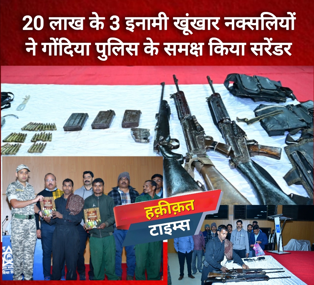 जिन नक्सलियों ने आत्मसर्मपण किया, उनमें दर्रेकसा एरिया कमेटीकमांडर रोशन उर्फ मारा इरिया वेडजा (उम्र35 वर्ष), ACM सुभाष उर्फ पोज्जा बंडू रव्वा (उम्र 26 वर्ष) निवासी येरापल्ली तह. उसूर, जिला बीजापुर, रतन उर्फ मनकू ओमा पोयम निवासी रेखापाल तह. जिला नारायणपुर छत्तीसगढ़ ने आज 13 दिसंबर को हथियारों के साथ वेशभूषा में आकर गोंदिया पुलिस के समक्ष आत्मसर्मपण किया।