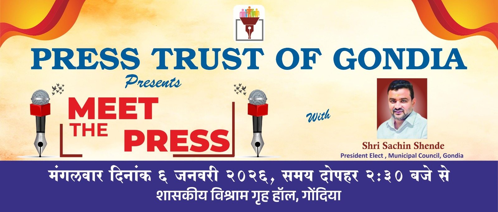 इस अवसर पर गोंदिया नगर परिषद के नवनिर्वाचित नगराध्यक्ष सचिन शेंडे ” मीट- द- प्रेस ” कार्यक्रम में लोगों के सवालों का जवाब भी देंगे , जहां वे गोंदिया शहर के विकास के लिए अपनी योजनाओं और प्राथमिकताओं को बताएंगे। कार्यक्रम के सफलतार्थ प्रेस ट्रस्ट ऑफ गोंदिया के सभी सदस्य प्रयासरत हैं।