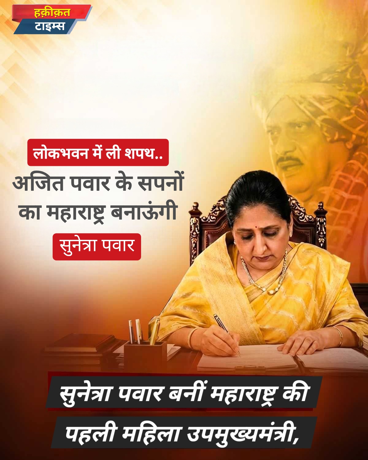 राज्य ब्यूरो, मुंबई। महाराष्ट्र के दिवंगत उपमुख्यमंत्री अजित पवार की पत्नी सुनेत्रा पवार ने आज शनिवार को मुंबई स्थित लोकभवन में आयोजित एक संक्षिप्त समारोह में महाराष्ट्र के उपमुख्यमंत्री पद की शपथ ले ली। वह राज्य की पहली महिला उपमुख्यमंत्री बनी हैं।