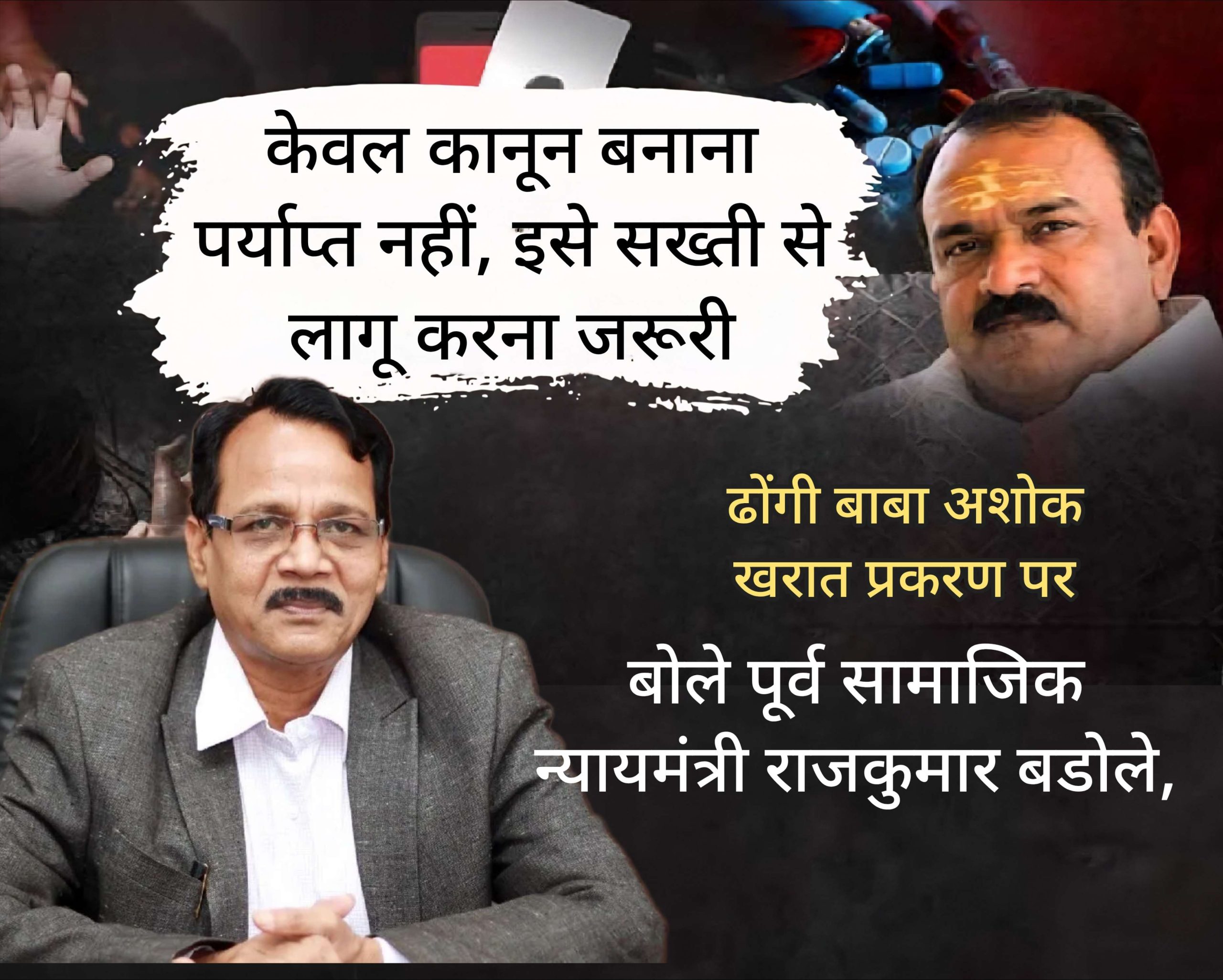 गोंदिया, 02 अप्रैल। नाशिक के हाई प्रोफाइल ढोंगी ज्योषातिचार्य, महाठग, नरपिशाच, महिलाओं का यौन शोषण करने वाला ढोंगी बाबा अशोक खरात की हैवानियत से पूरा महाराष्ट्र शर्मसार हुआ है। वर्तमान में अशोक खरात भले ही पुलिस शिकंजे में है पर महाराष्ट्र में सियासत गर्मायी हुई है। हाल ही में इस मामले पर महाराष्ट्र के पूर्व सामाजिक न्यायमंत्री एवं वर्तमान में एनसीपी से विधायक राजकुमार बड़ोले ने ऐसे मामलों पर अपनी प्रतिक्रिया व्यक्त कर इस पर बनें कानून को सख्ती से लागू करने की बात कही है।